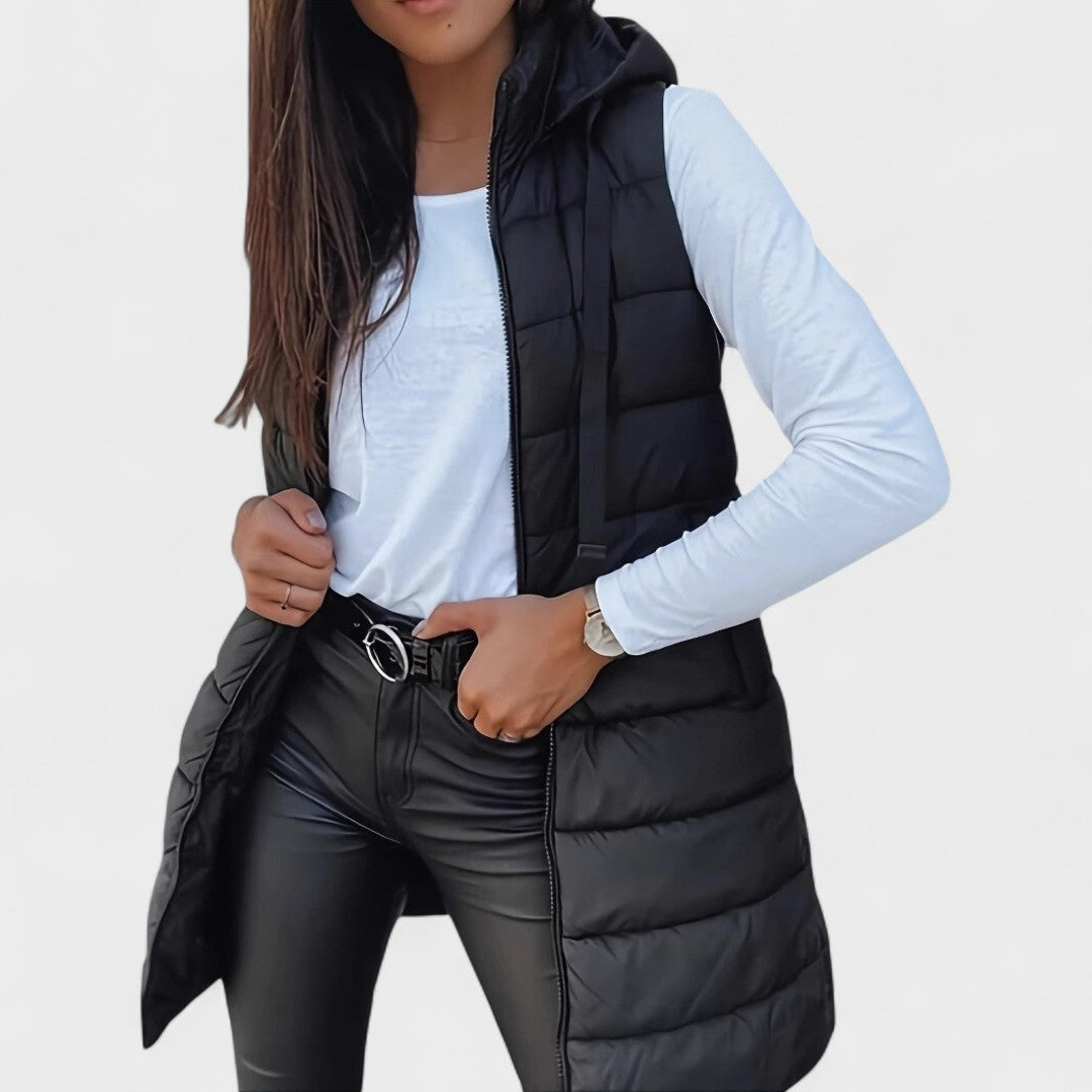 Lourdes - Chaleco acolchado largo sin mangas y con capucha