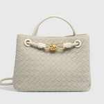 Eleva tus esenciales con este bolso tejido en tono índigo, donde el diseño atemporal se une a la comodidad diaria. Fabricado en cuero vegano de alta calidad, su textura trabajada y su forma estructurada aportan un toque elegante a cualquier look, tanto para un día en la ciudad como para una salida más tranquila por la noche. Un accesorio versátil con aire sofisticado, muy alineado con el estilo cuidado de Martina Madrid.